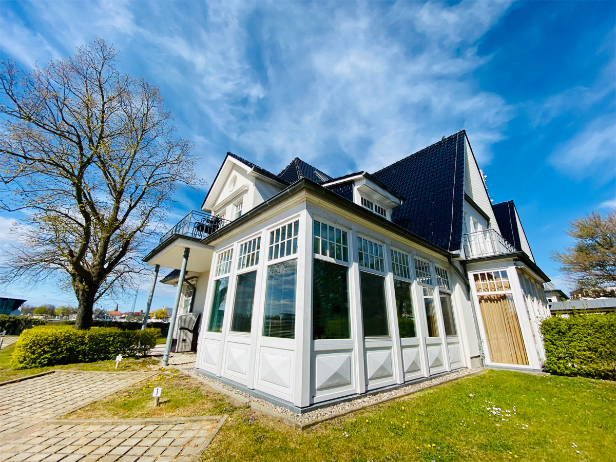 „Ein Traum am Meer“ – Die Residenz Lotsenhaus befindet sich unmittelbar gegenüber dem Warnemünder Kreuzfahrtterminal und bietet einen einmaligen Blick auf vorbeiziehende Schiffe, die Ostsee und die Warnemünder Skyline.